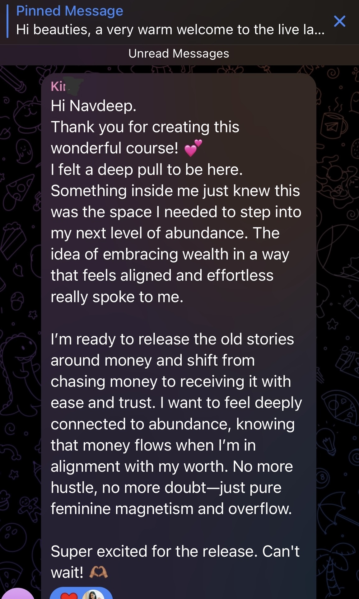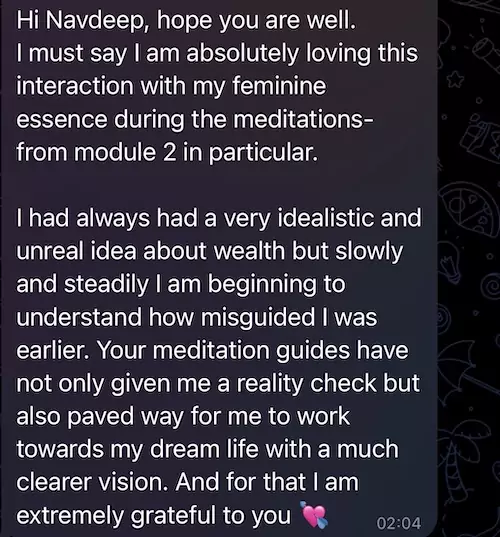 The participants of the live launch of this course who did this, benefited the most in form of life-altering energetic shifts in the way they see, receive and feel about money.