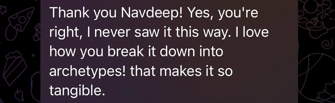 After working with her, I could understand my own thoughts really well. As Navdeep always says, the answer is within. She guided me to bring them to the surface and find the solution to the challenge at hand.
