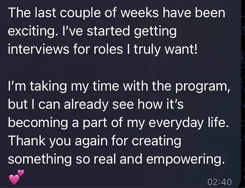 The money magnetism process I have shared in this course is what I (unknowingly) used in my corporate career when I attracted 3 back-to-back career promotions in the post-abuse year of rebuilding my relationship with money.