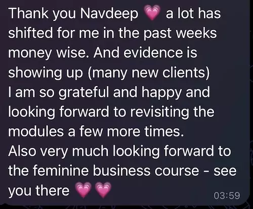 I reached out to work with Navdeep because I wanted to strengthen my relationship with money.